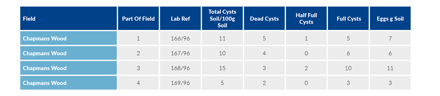 PCN sampling is carried out on a 1 hectare grid map, analysing 200g samples. This is the optimum technique, in line with AHDB guidance. Any other approach is not deemed sufficiently accurate.