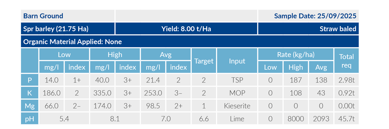 • Variable rate P, K, Mg and pH